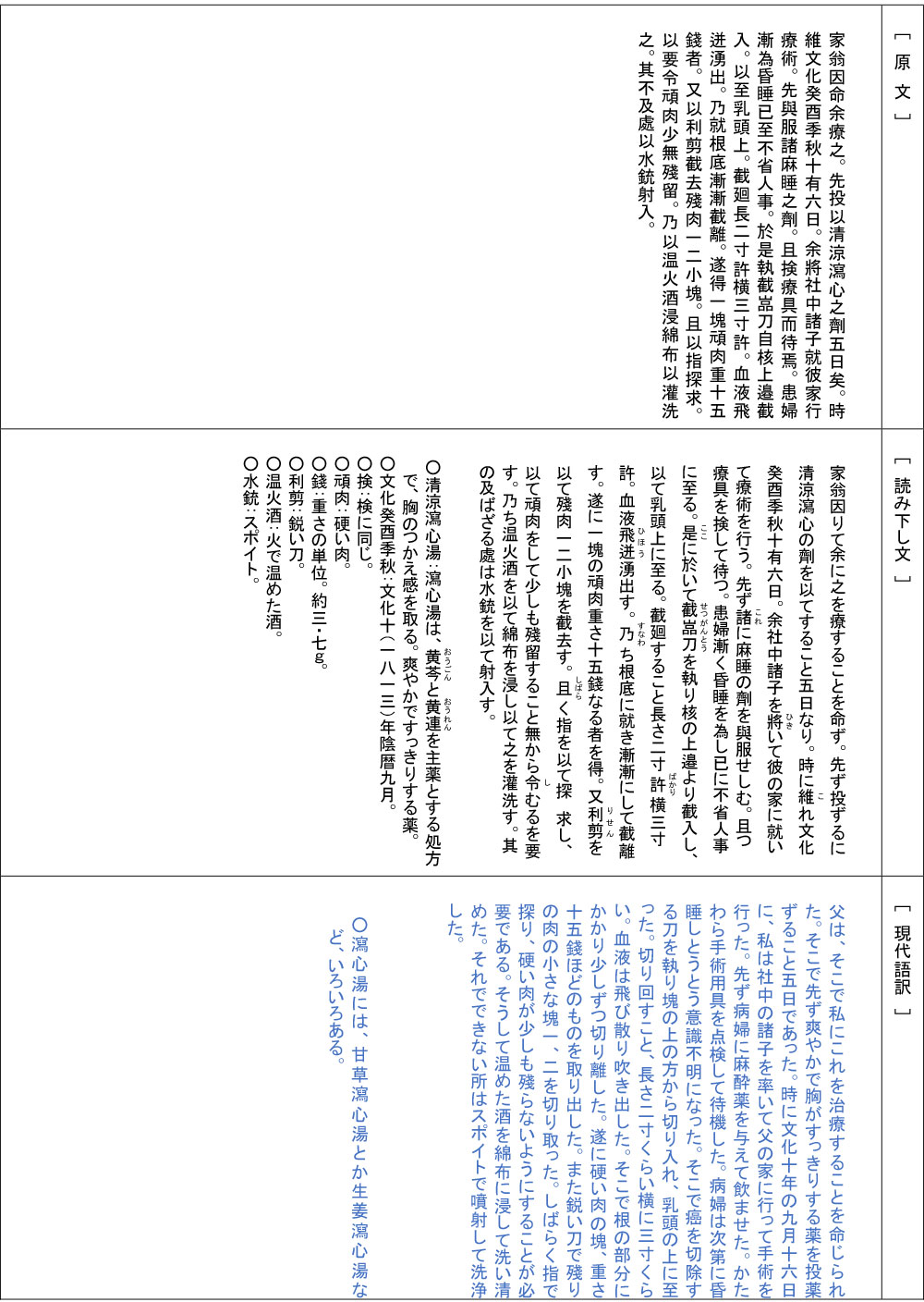 そして宮河は青洲から学んだ全身麻酔下の乳癌手術を患者に実施したものと思われます。注3-2