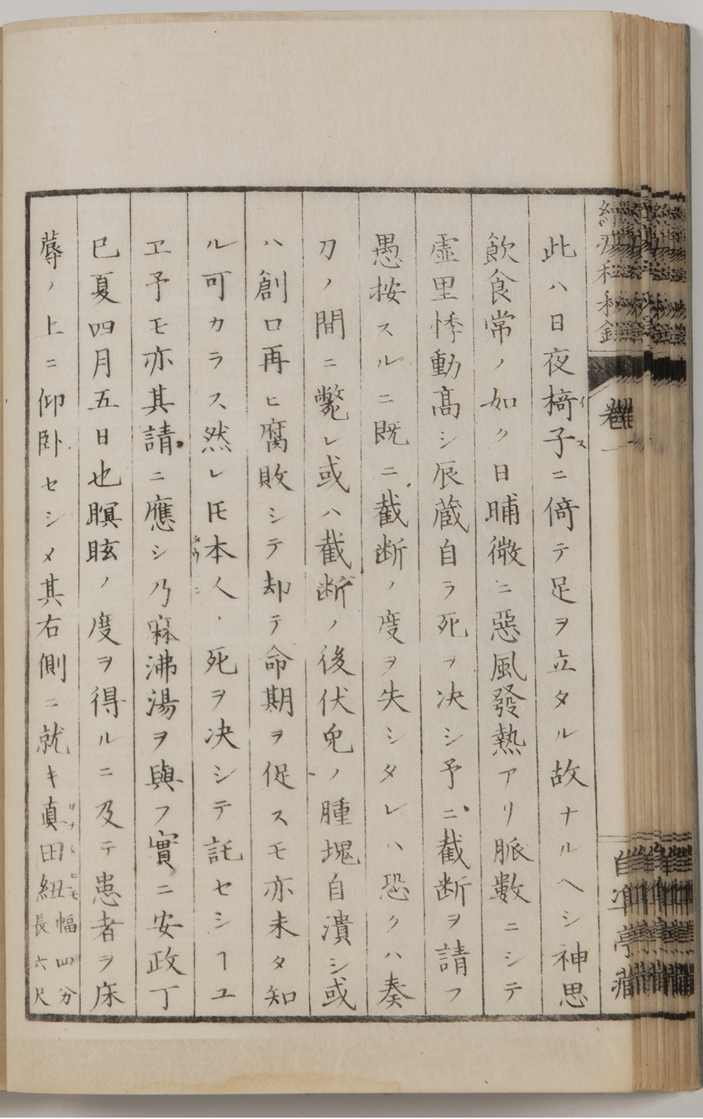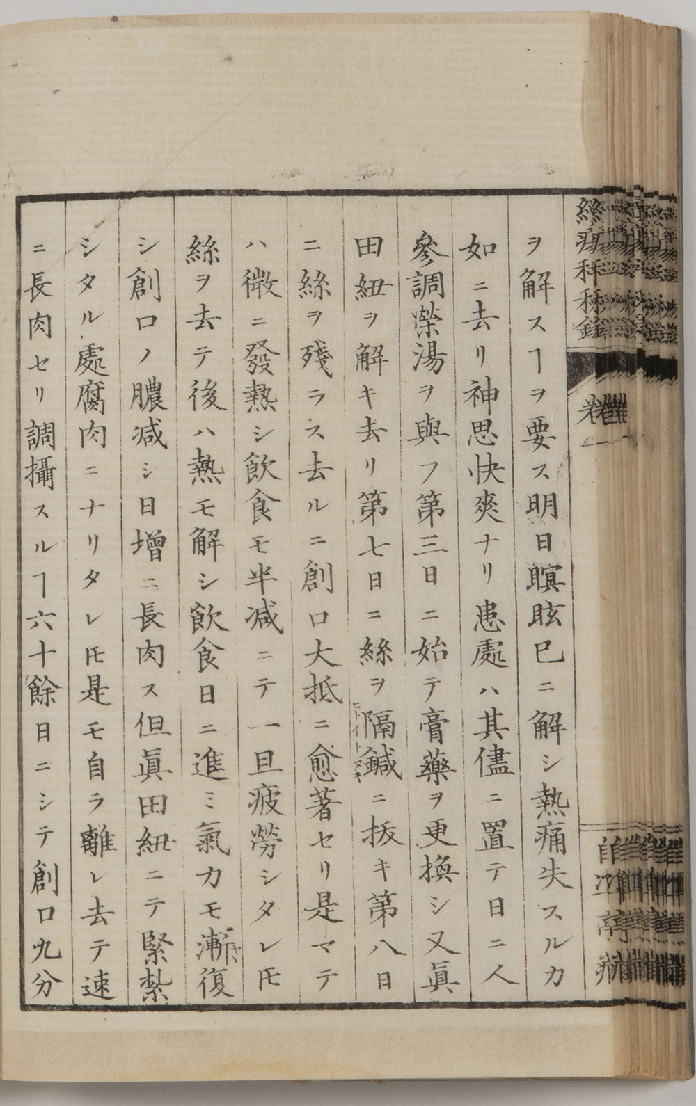 この下肢切断術は『続瘍科秘録』に詳細に手術年・患者名が記載されており、それによると安政4年(1857年)4月5日水戸藩士岡部辰蔵35歳に麻沸湯を与えて手術する様子を克明に記述しています。