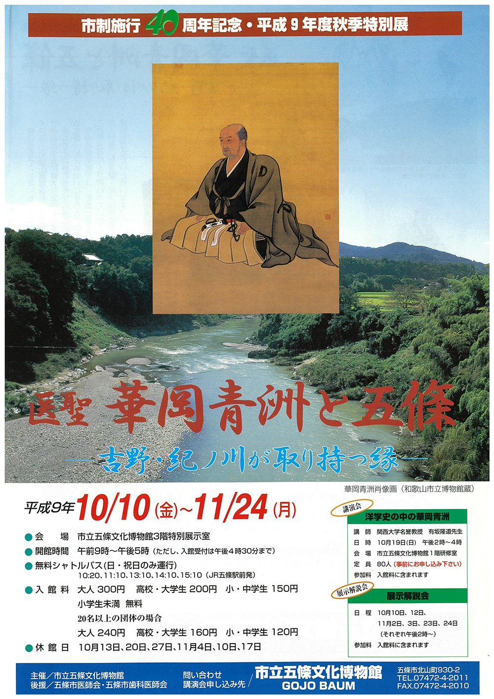 そこで川下りの資料を調べたところ、平成9年に市立五條文化博物館で『吉野・紀の川が取り持つ縁』という副題で華岡青洲展が開催されたことが判明しました。
