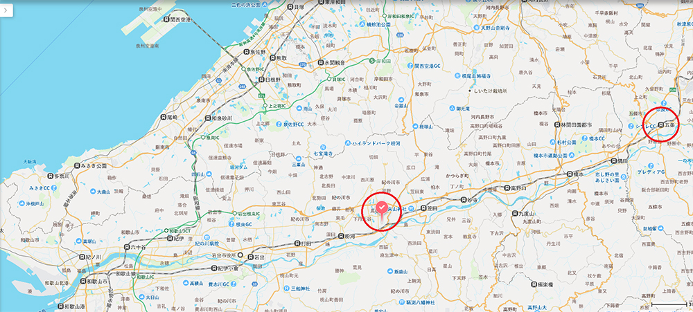 という推論を書いていて、もう一度地図をよく眺めたところ、大和(奈良県)五條から紀州(和歌山)西野山へは川を下ってくればより速いことに気が付きました。紀の川(奈良県側は吉野川の名称)は五條からは下り船で随分早く着くでしょう。