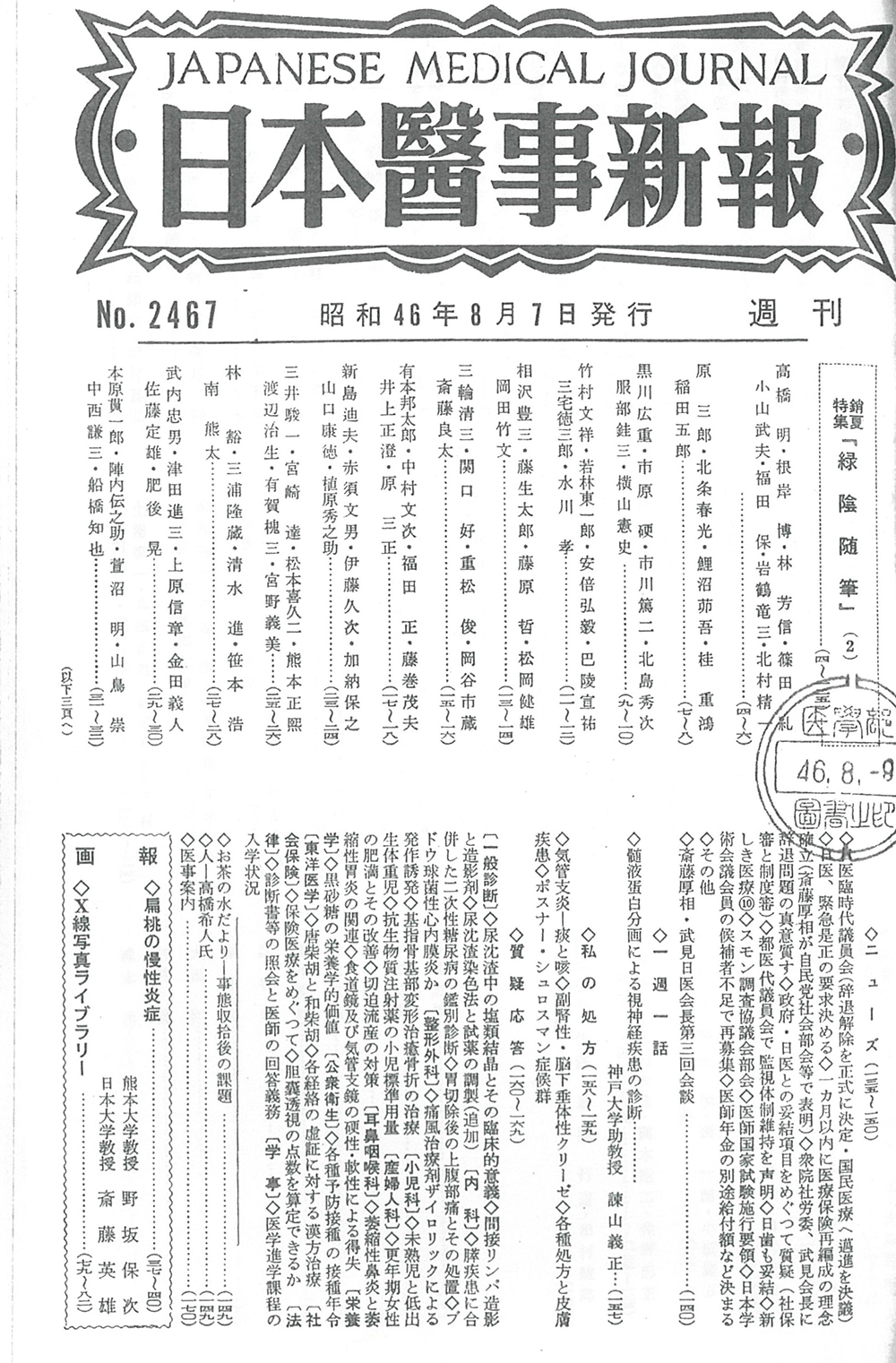 一方松木氏の第1報である昭和46年8月7日付日本医事新報への短報は、彼が医師としての視点を以て考察しそこから導いた疑問点の解決の為、五條市教育委員会へ問い合わせたという事ですので誠に素晴らしいことであります。注6