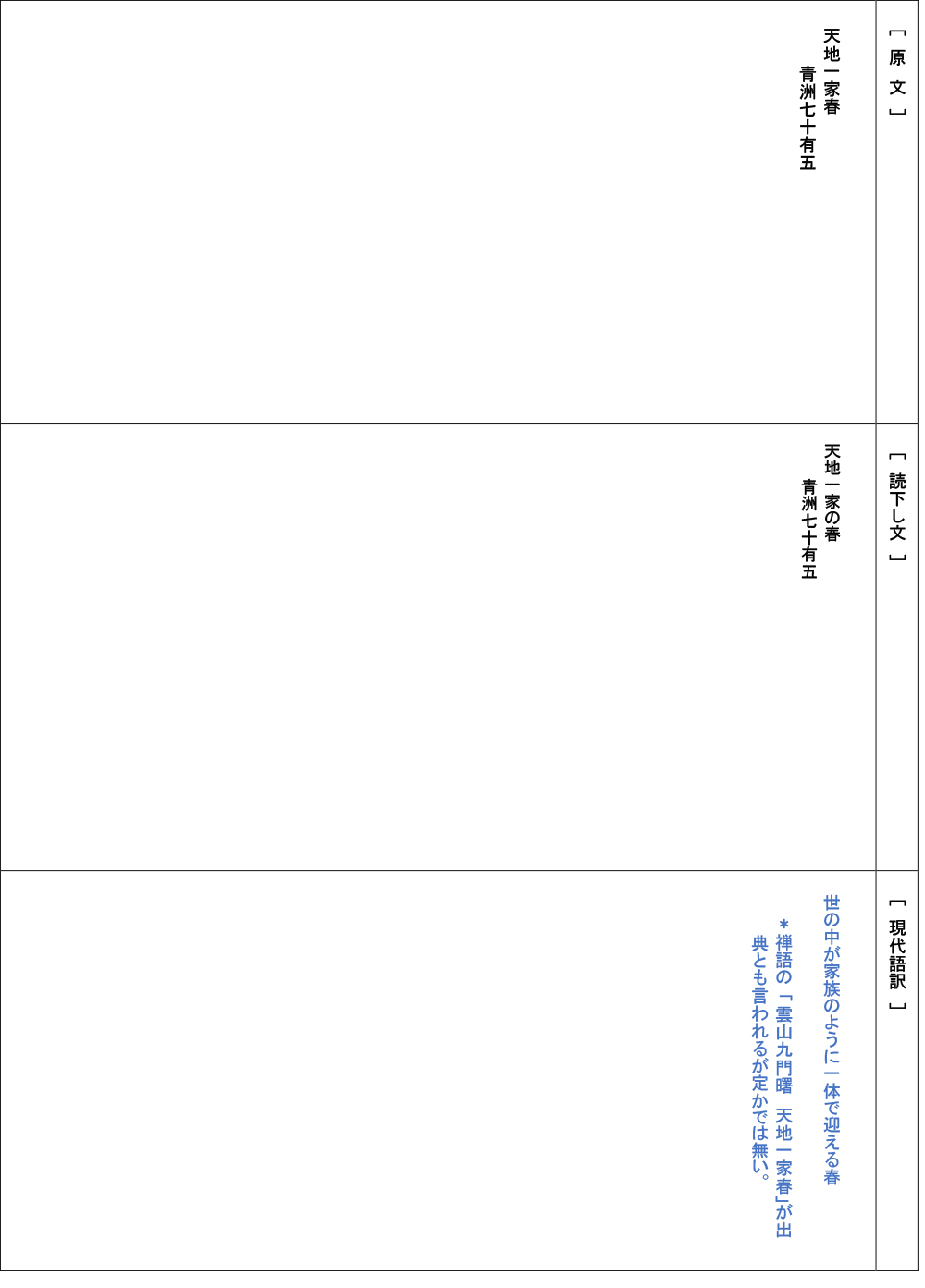 - 青洲の遺墨の語句等の出典は、概ね経書(詩経・易経・春秋左氏伝・論語・孟子等)、