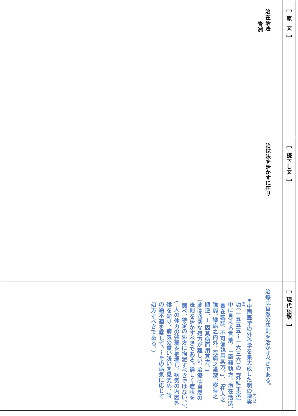 書の披露第3回目として青洲自筆の書を掲載し、その漢詩・言葉の出典と解説を試みよう。