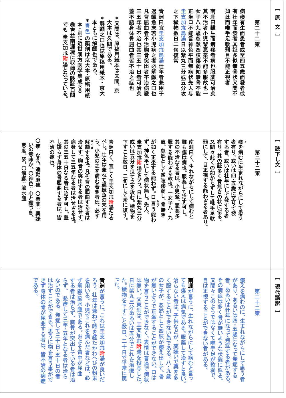 これは前回《青洲逍遥 第16回》で紹介した中川脩亭(春林軒門人録に天明8年1788年に入門記載があり。)が原著作者であり、春林軒の後、寛政5年1793年に門下に入った京都の吉益南涯及び華岡青洲の両名に病人の症状とその処方について100の質問をし、双方が回答したものです。