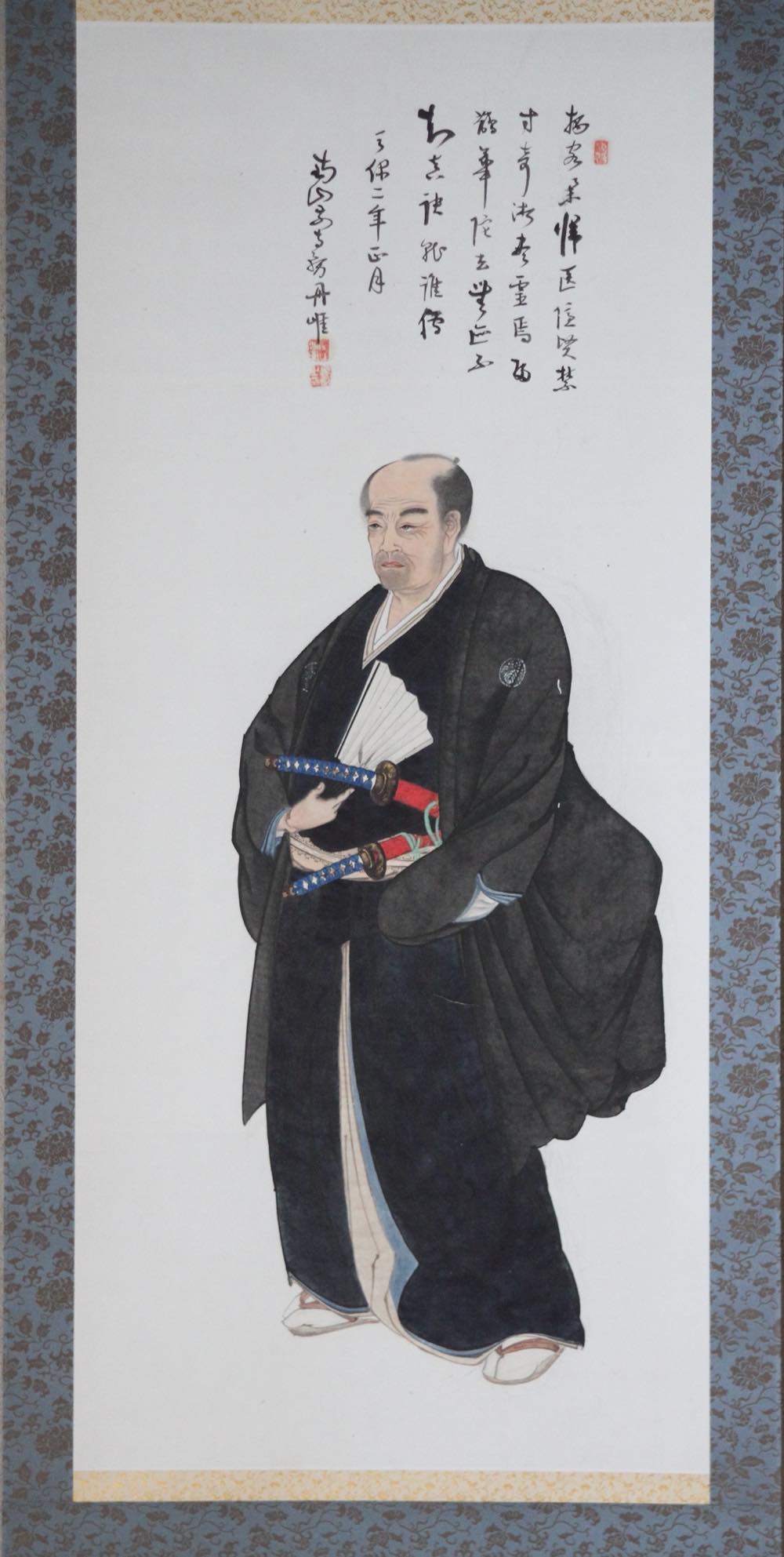 次は青洲の立像に乗如法印が丹崕の雅号で詩を書いたものをご覧いただきます。