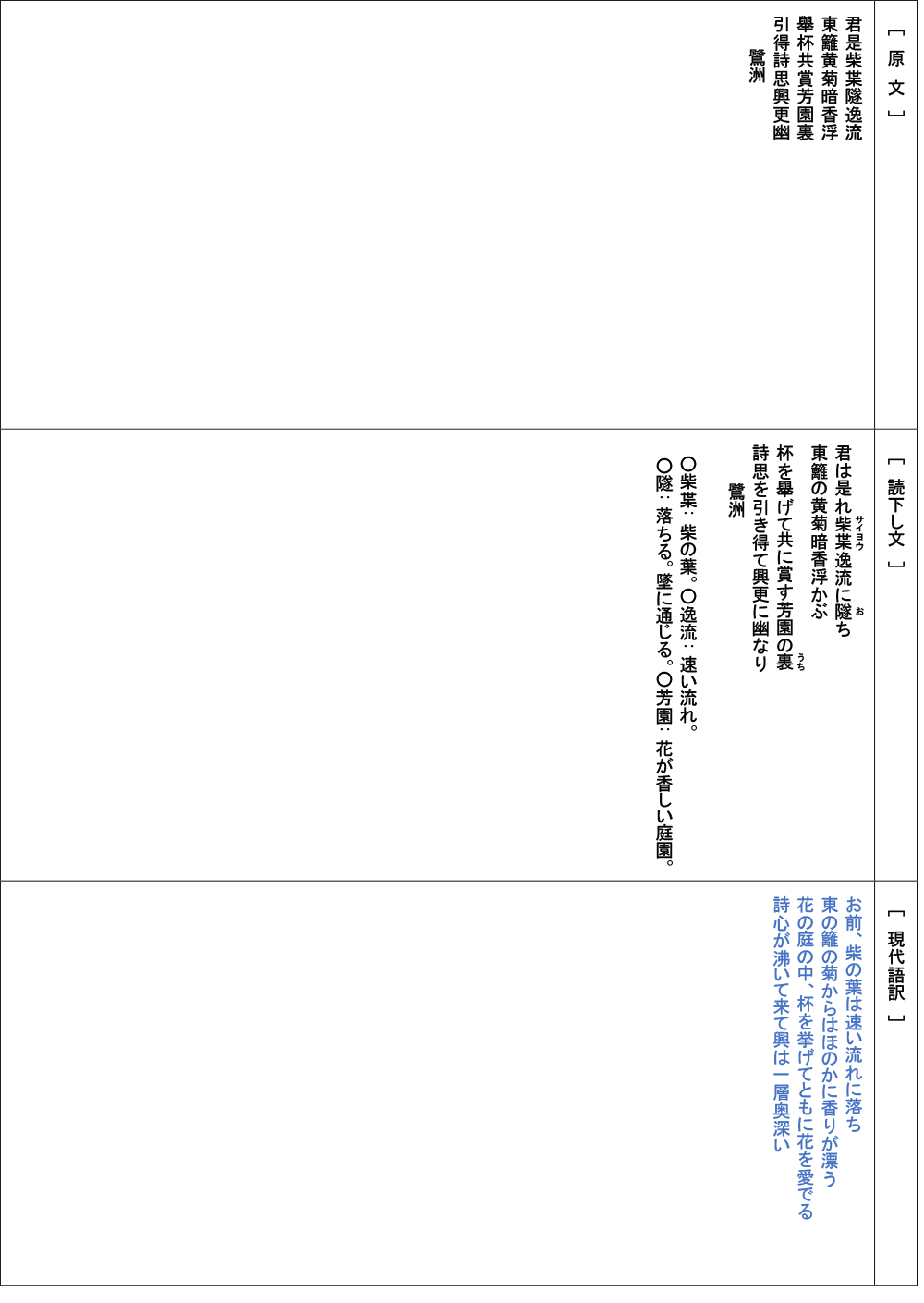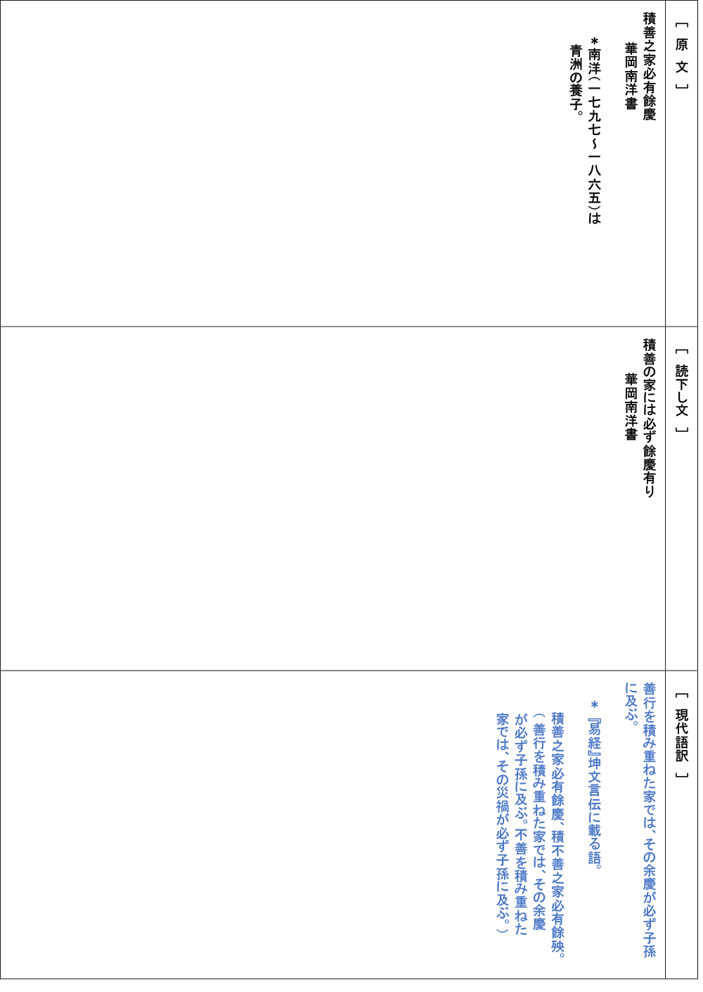 各人の書と、その漢詩・言葉の出典と解説を試みよう。