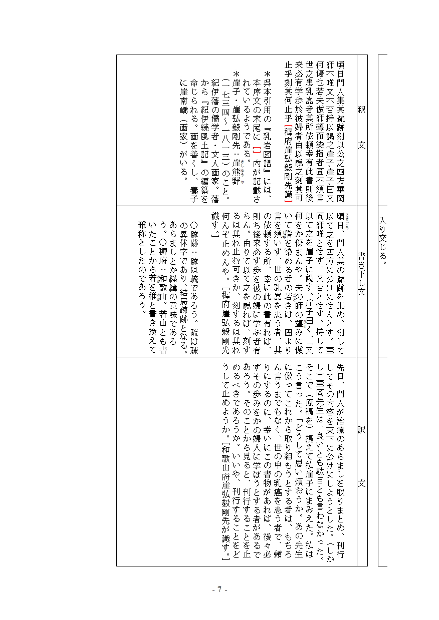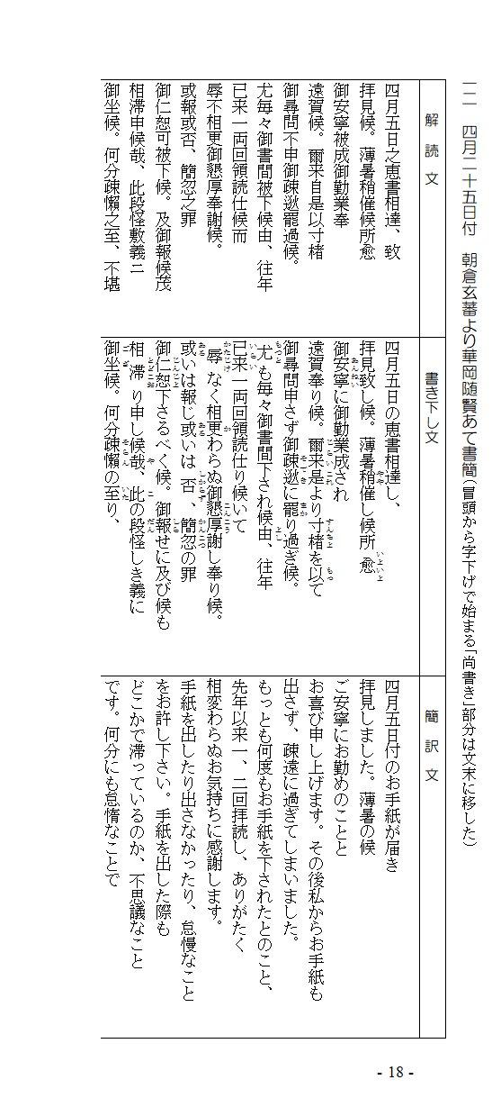 ③出版するかどうか青洲が悩んでいて、若い時の京都遊学時からの先輩医師・儒学者である朝倉氏に手紙で相談した模様で、その後の彼からの返信手紙
