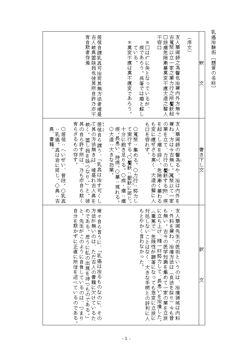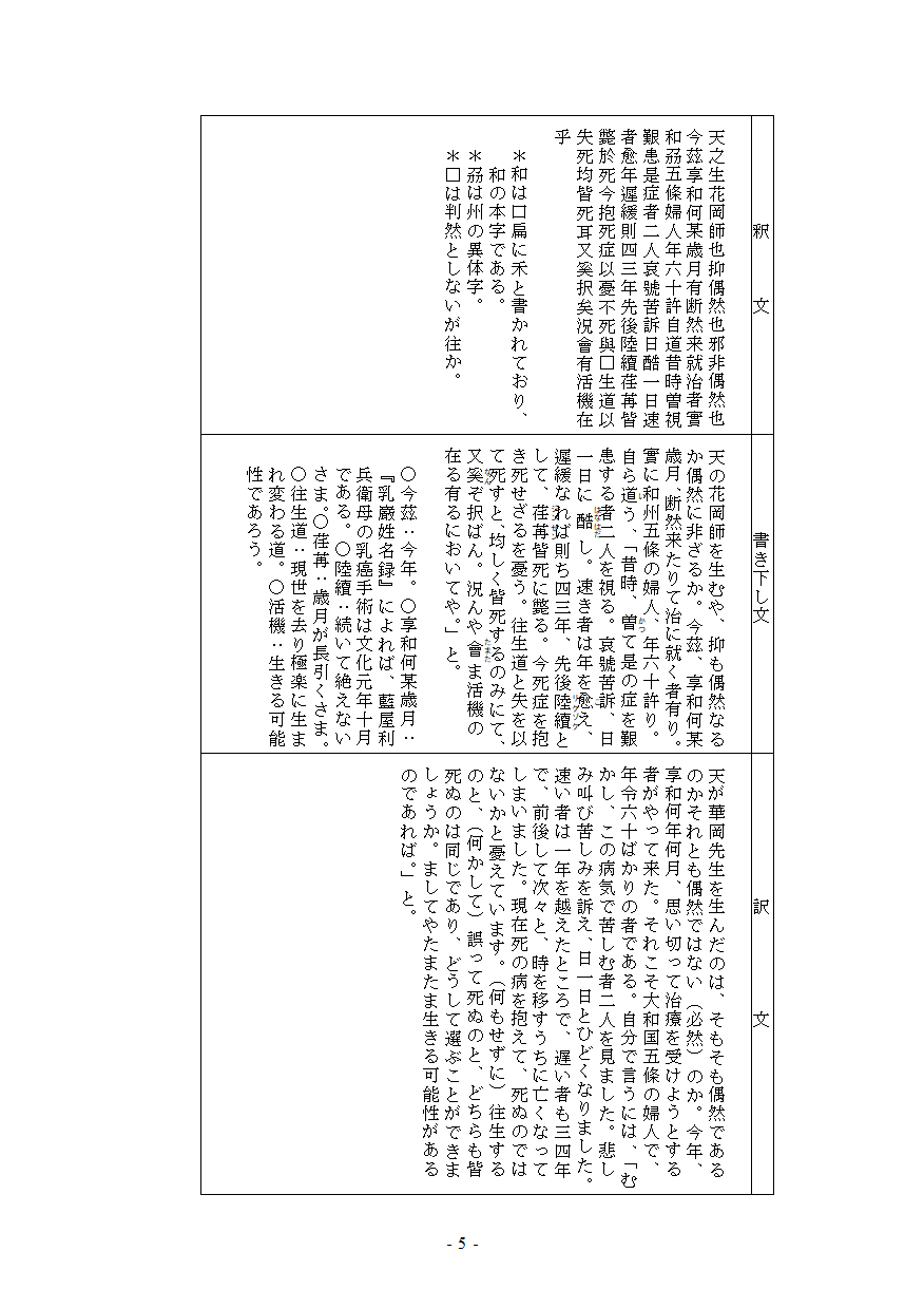 また後世の門人の佐藤持敬注5は文久元年(1861年)に「華岡氏遺書目録」という口述文書の整理書を著してその冒頭の序で次の通り青洲の弁として記述しています。