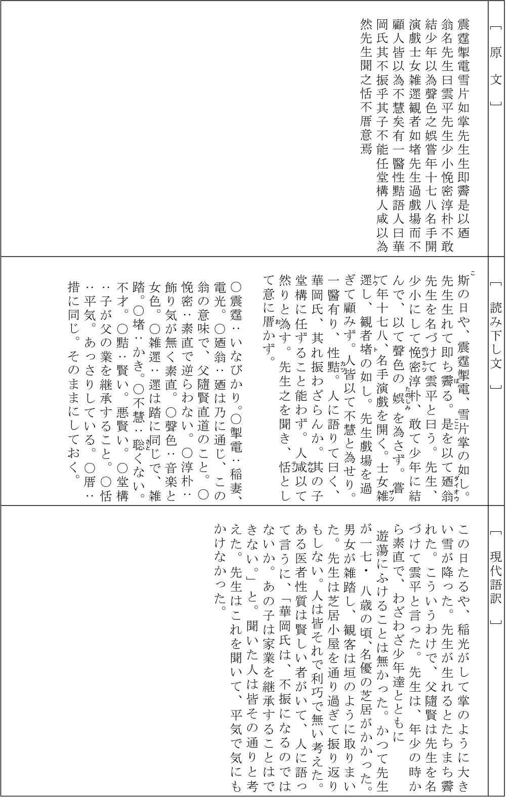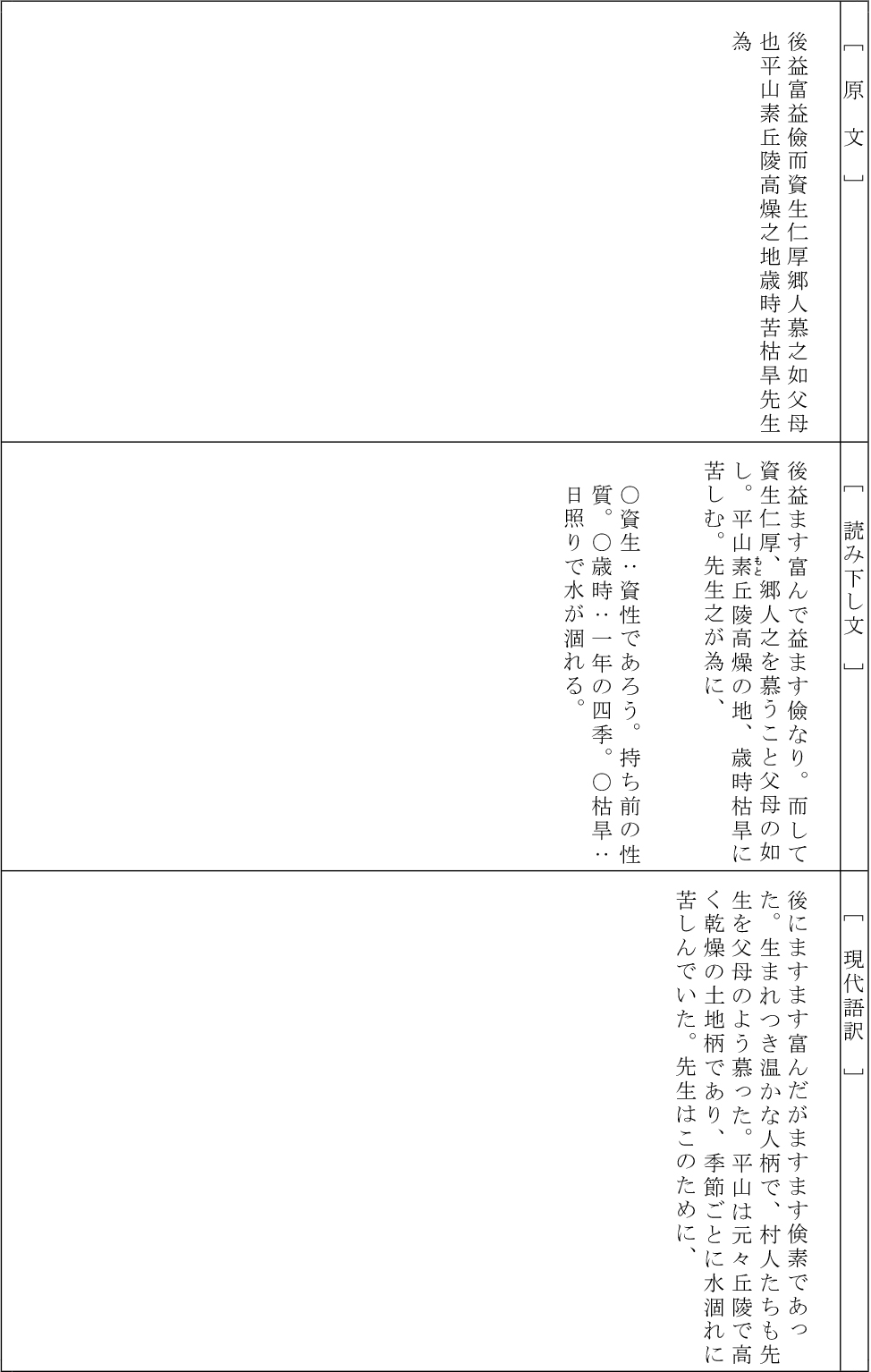 | 注8: | 士族及び帯刀の許可日については、著者不明の略伝のこの項の年月日(享保2年9月1日)と、本人自筆と思われるこの回の冒頭本文注Aの文化2年10月以降と考える文献保存会の推察とがあるが、なお、裏付ける調査が必要と考える。 |