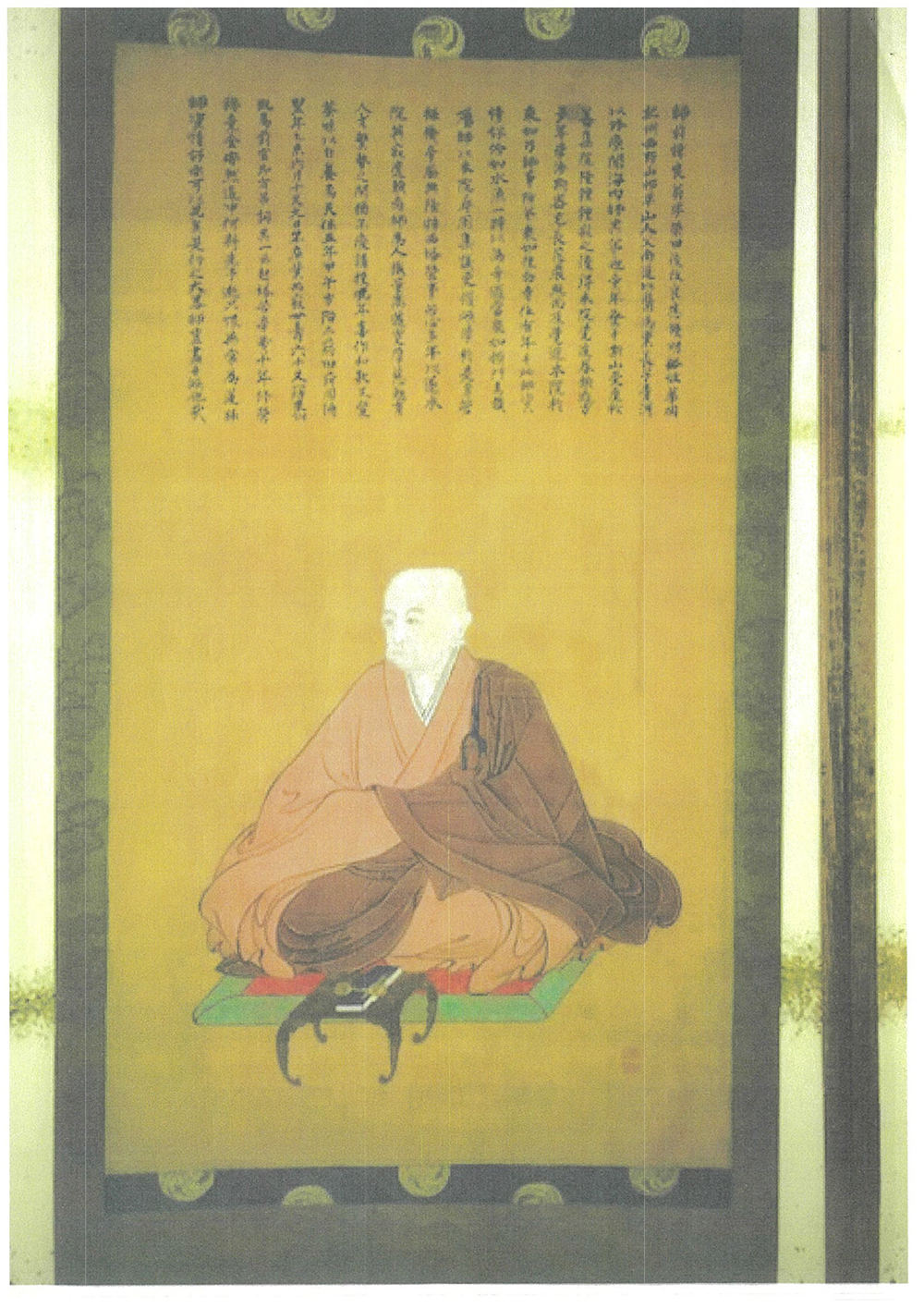 | 注4-1: | のち高野山正智院40代住職となった。(正智院の先代39代は乗如法印といい高野山真言宗358世の管長になった。)今般高野山正智院から栄傳改め良應の掛け軸の写真を送っていただいたのでその画讃の釈文を記す。(青洲と顔立ちがよく似ている。) |