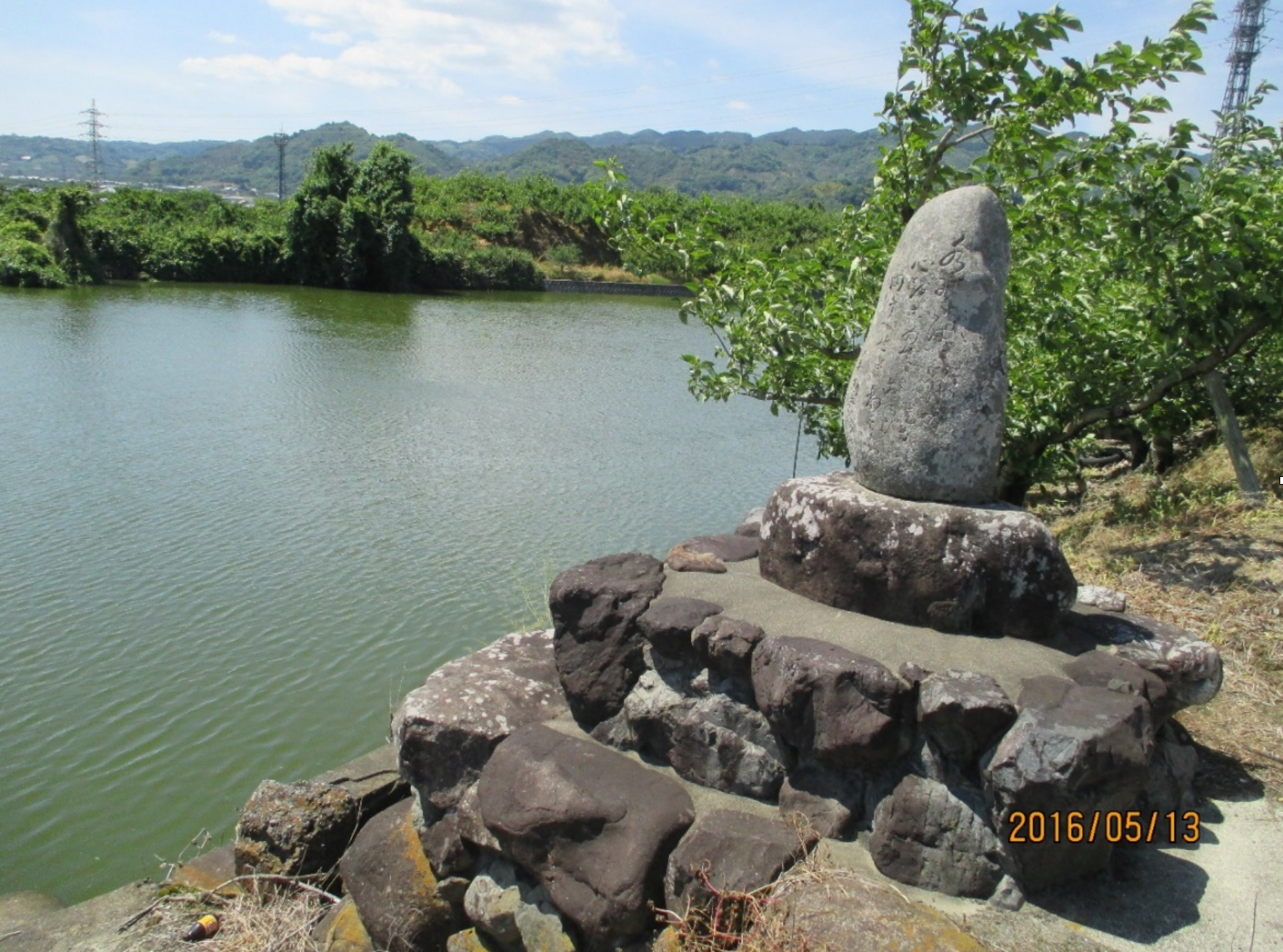 さて、《青洲逍遥 第1回》の(注5)で〈青洲は、地域の農民のために干ばつ防止の大きな溜池を作った〉と書きましたが、そのため池が次の写真です。