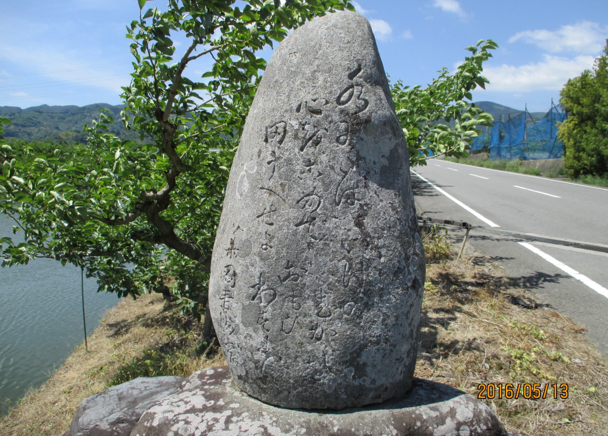 そのほとりには青洲自作の歌を刻した大きな自然石の歌碑があります。