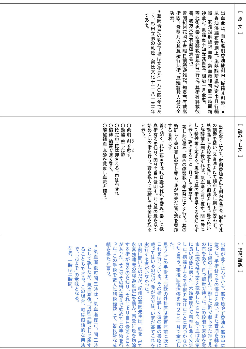 そして宮河は青洲から学んだ全身麻酔下の乳癌手術を患者に実施したものと思われます。注3-2