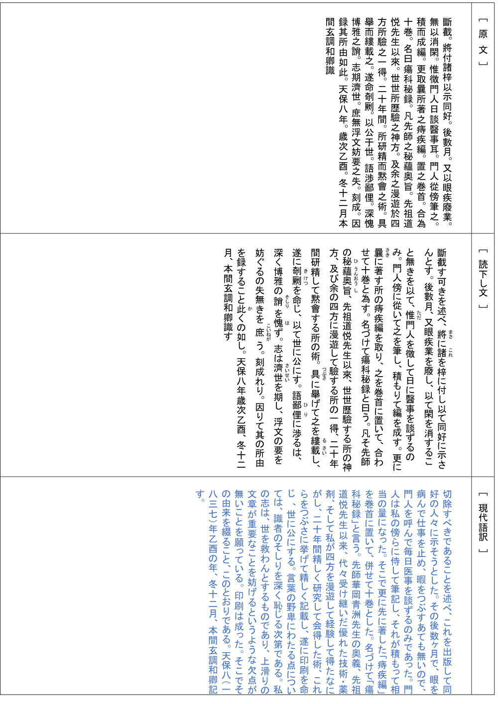 その『瘍科秘録』の本間玄調自身の序を現代語訳にします。