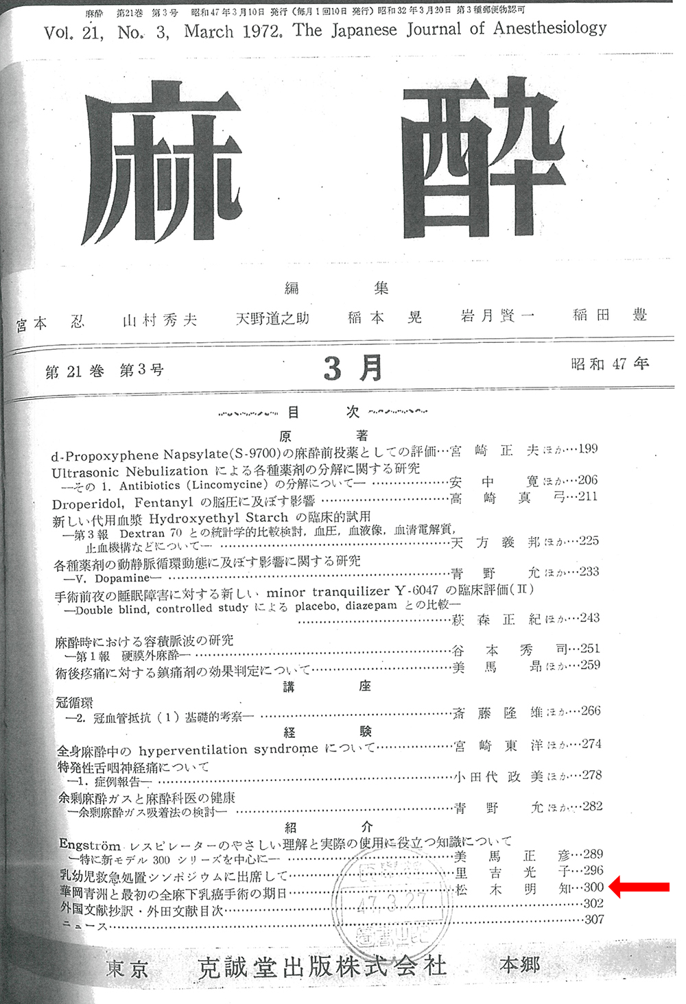 松木氏はより詳しく『麻酔』昭和47年3月(第21巻第3号)誌上でこの件を発表しています。