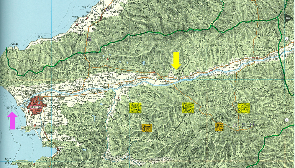 という推論を書いていて、もう一度地図をよく眺めたところ、大和(奈良県)五條から紀州(和歌山)西野山へは川を下ってくればより速いことに気が付きました。紀の川(奈良県側は吉野川の名称)は五條からは下り船で随分早く着くでしょう。