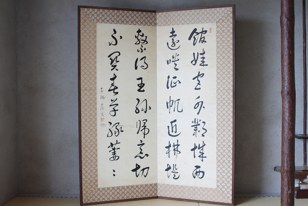 ※今回の遺墨は2曲屏風2隻と扁額2面、掛軸2幅である。