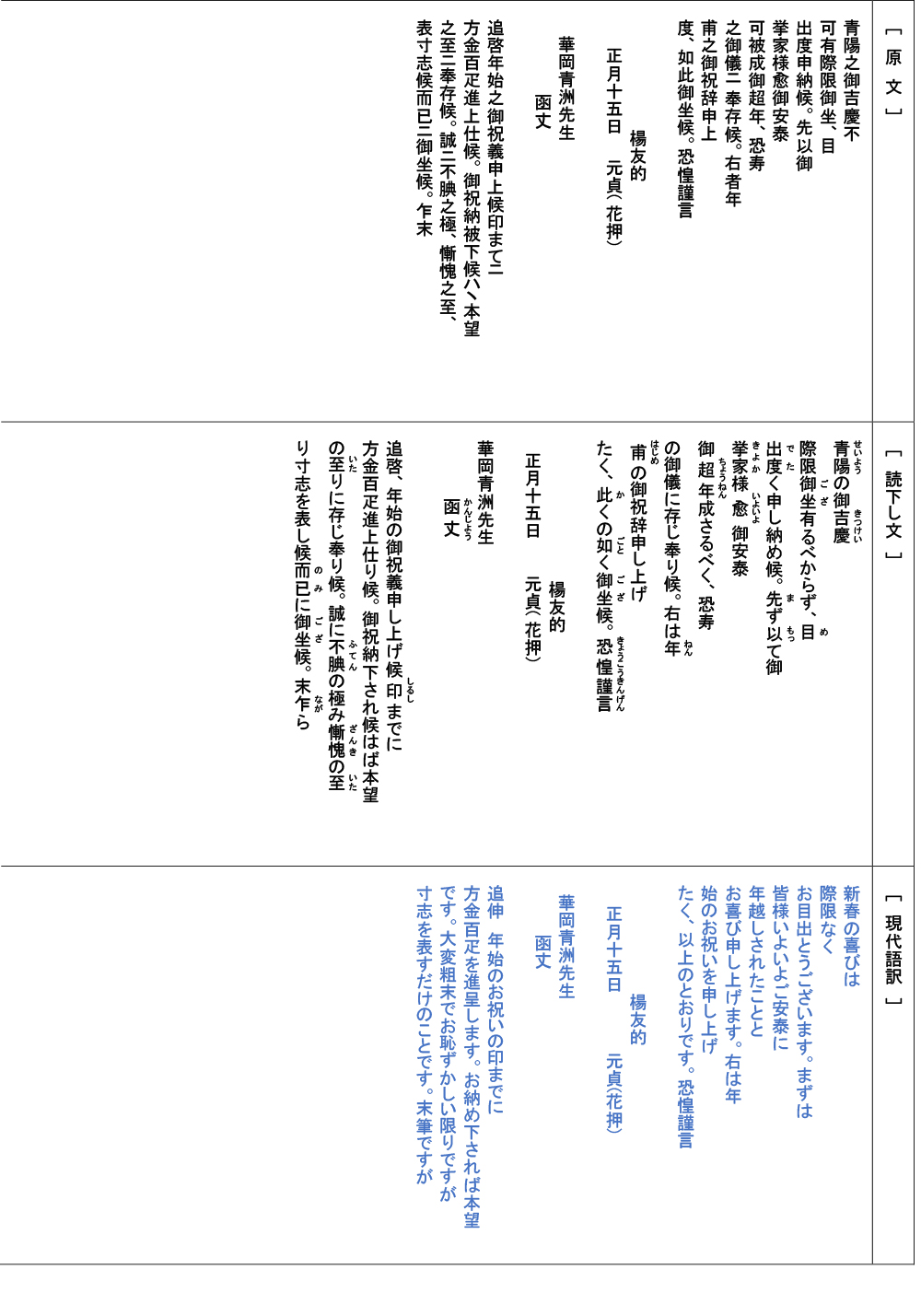 時代は飛んで青洲の子供の4代隨賢にあてた書簡です。