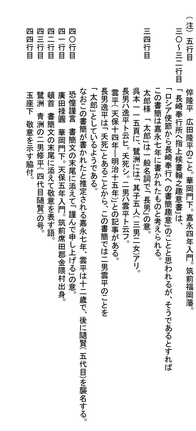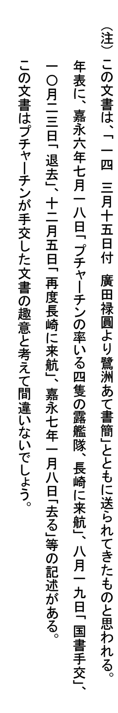 次にこの手紙の文面から推察できる、廣田から鷺洲への手紙に同封されたと思われるロシア使節から長崎奉行所への書簡の内容を述べている大変興味深い書簡を紹介します。