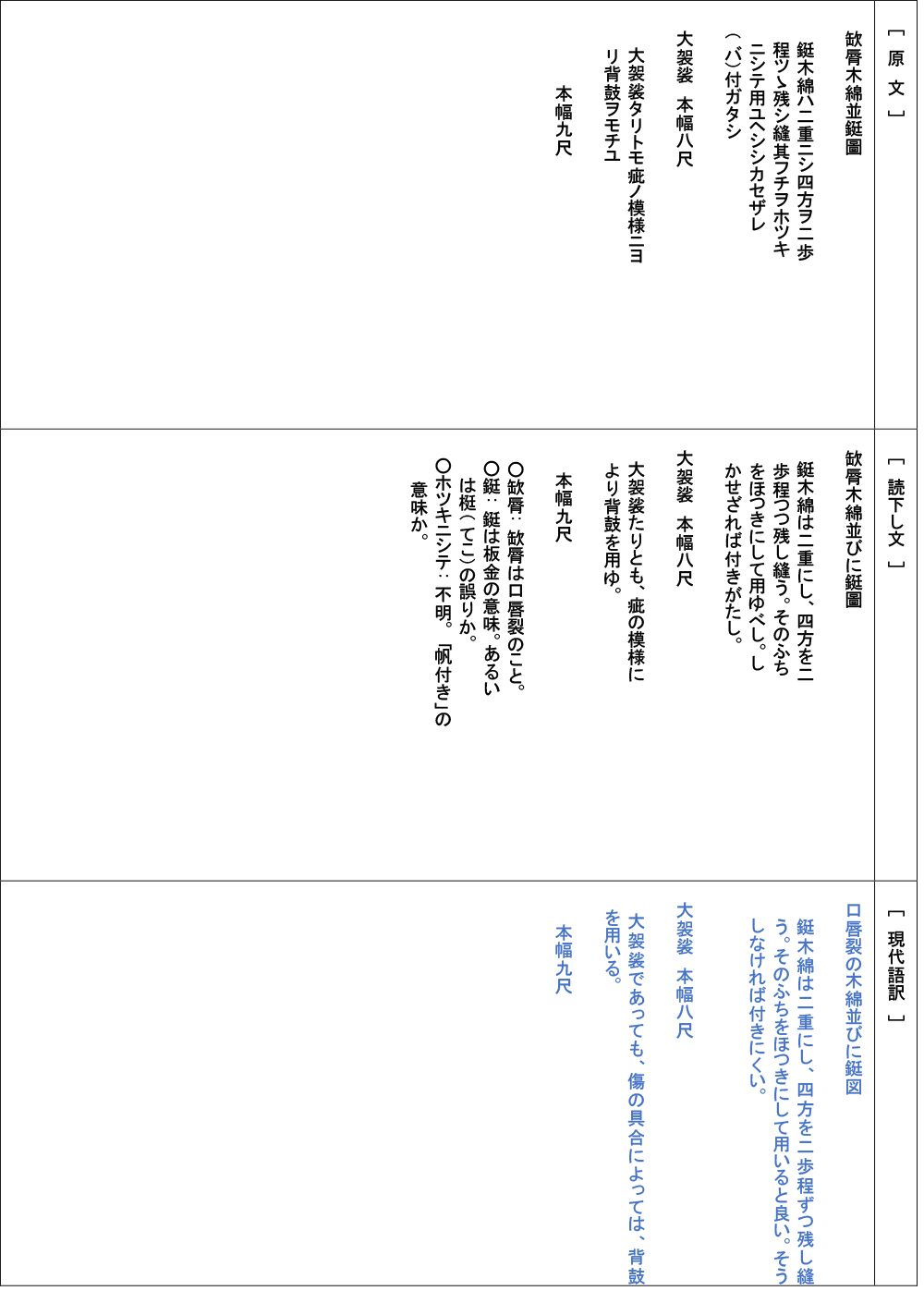 使用する底本は本家所蔵の整骨・巻木綿絵巻(資料A=以下Aと称す)と、 その解説本と言える京都大学所蔵本(資料B=以下Bと称す)です。