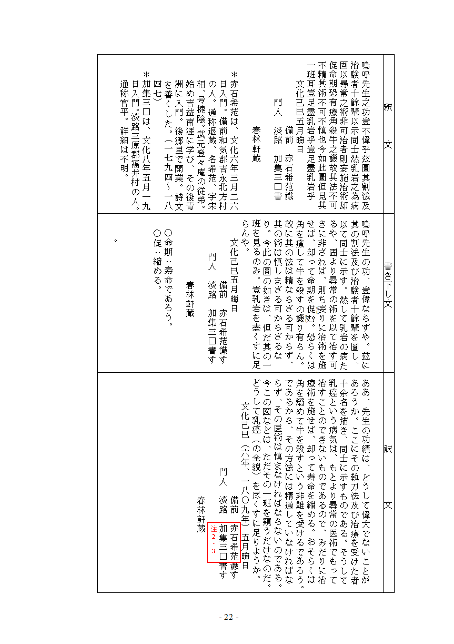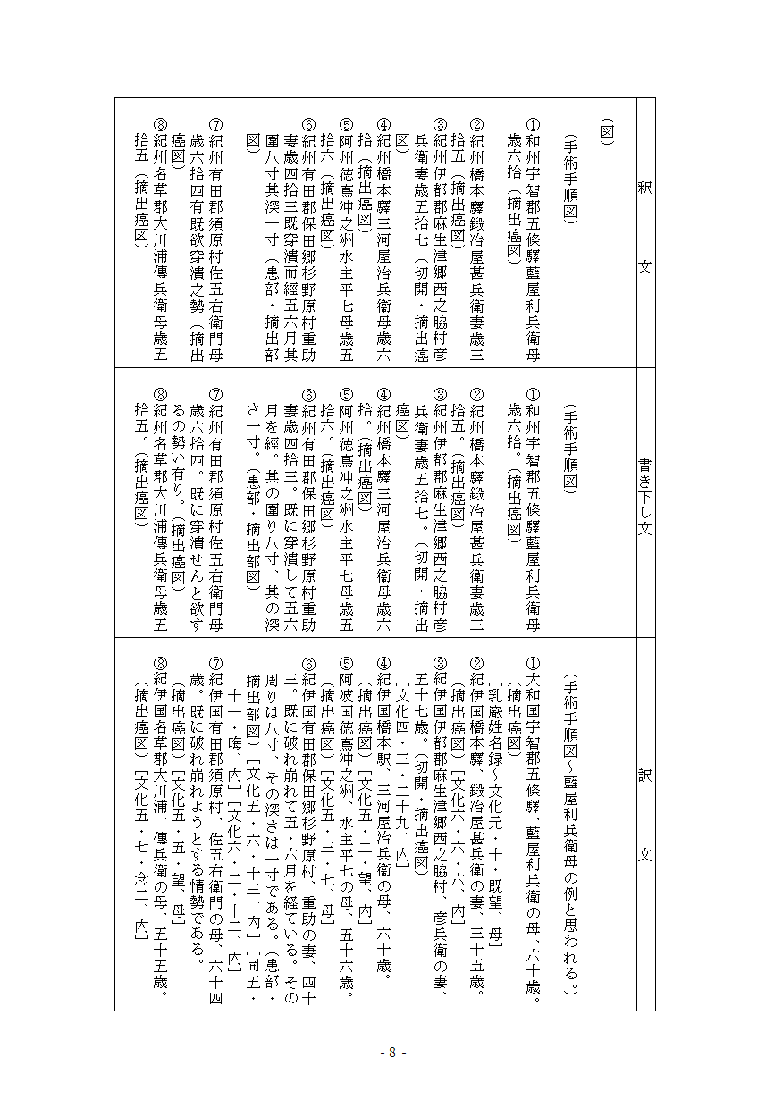 たくさんの治療事例が続く中で、門人たちからその手術の内容を詳述した記録を出版し、広く華岡青洲の外科の一端を知らせるべきであるという機運が起こりました。
