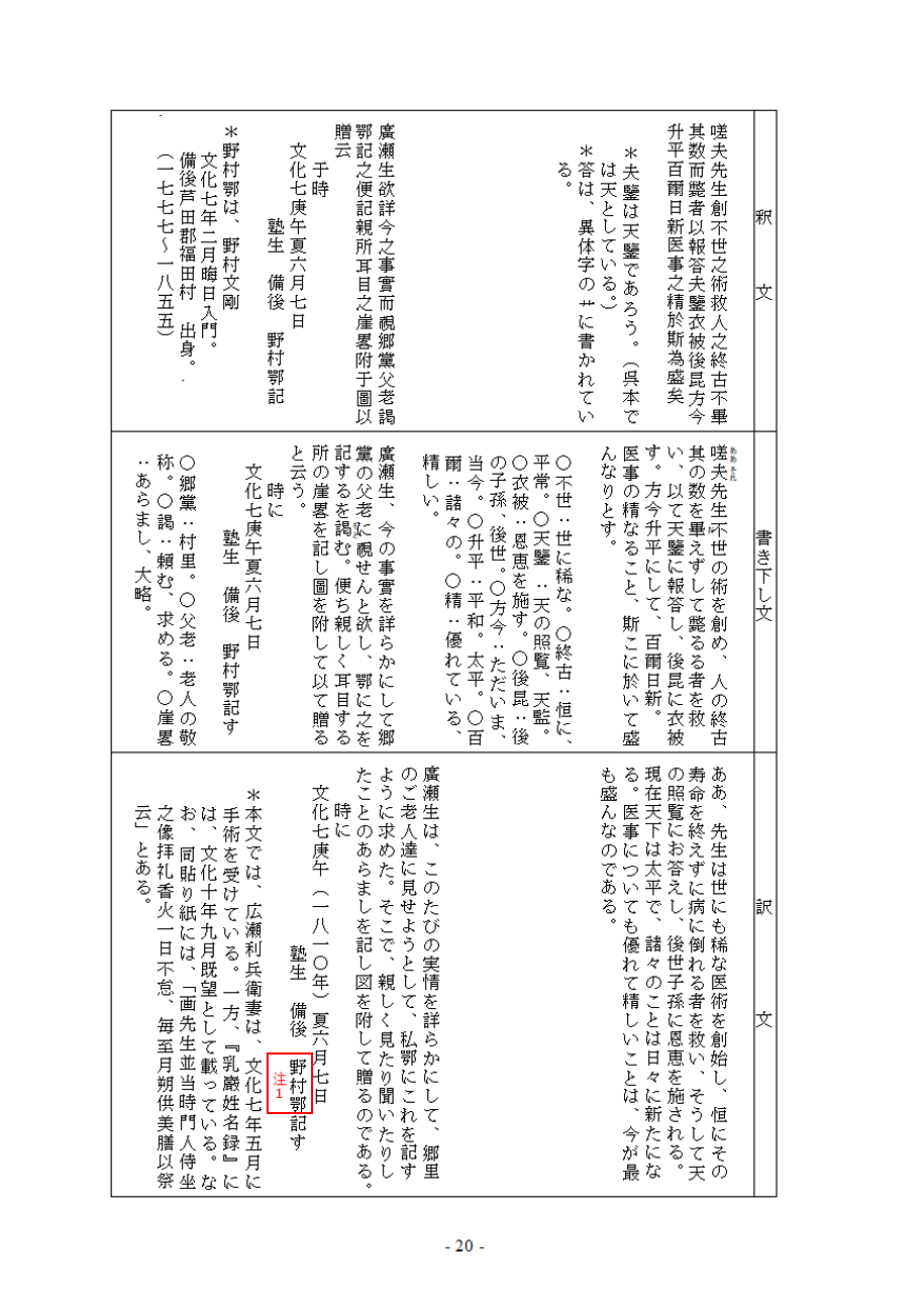 文化7(1810)年2月晦日入門 備後の野村文剛(のむら ぶんごう) 通称は鄂。