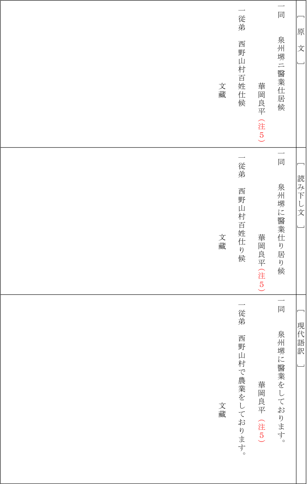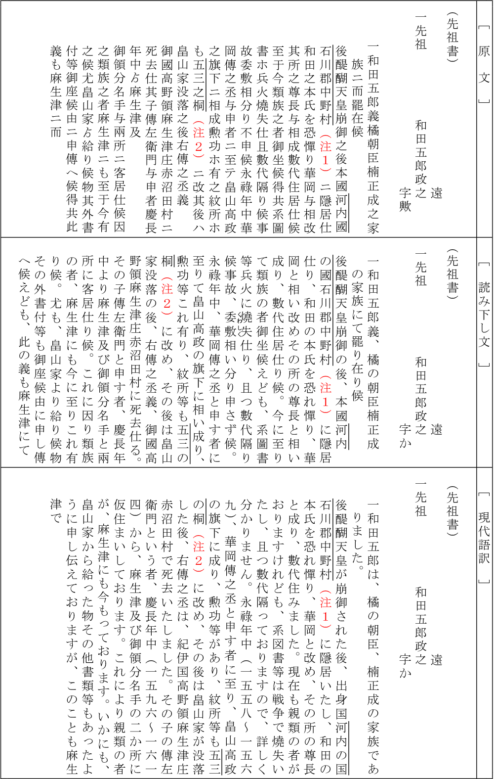 注1: 河内国石川郡中野村字華岡に在したところから華岡と称す。