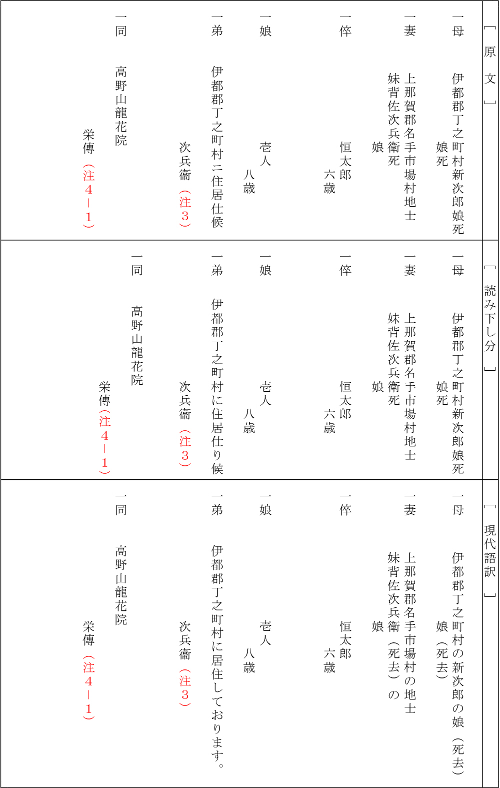 注8: 士族及び帯刀の許可日については、著者不明の略伝のこの項の年月日(享保2年9月1日)と、本人自筆と思われるこの回の冒頭本文注Aの文化2年10月以降と考える文献保存会の推察とがあるが、なお、裏付ける調査が必要と考える。