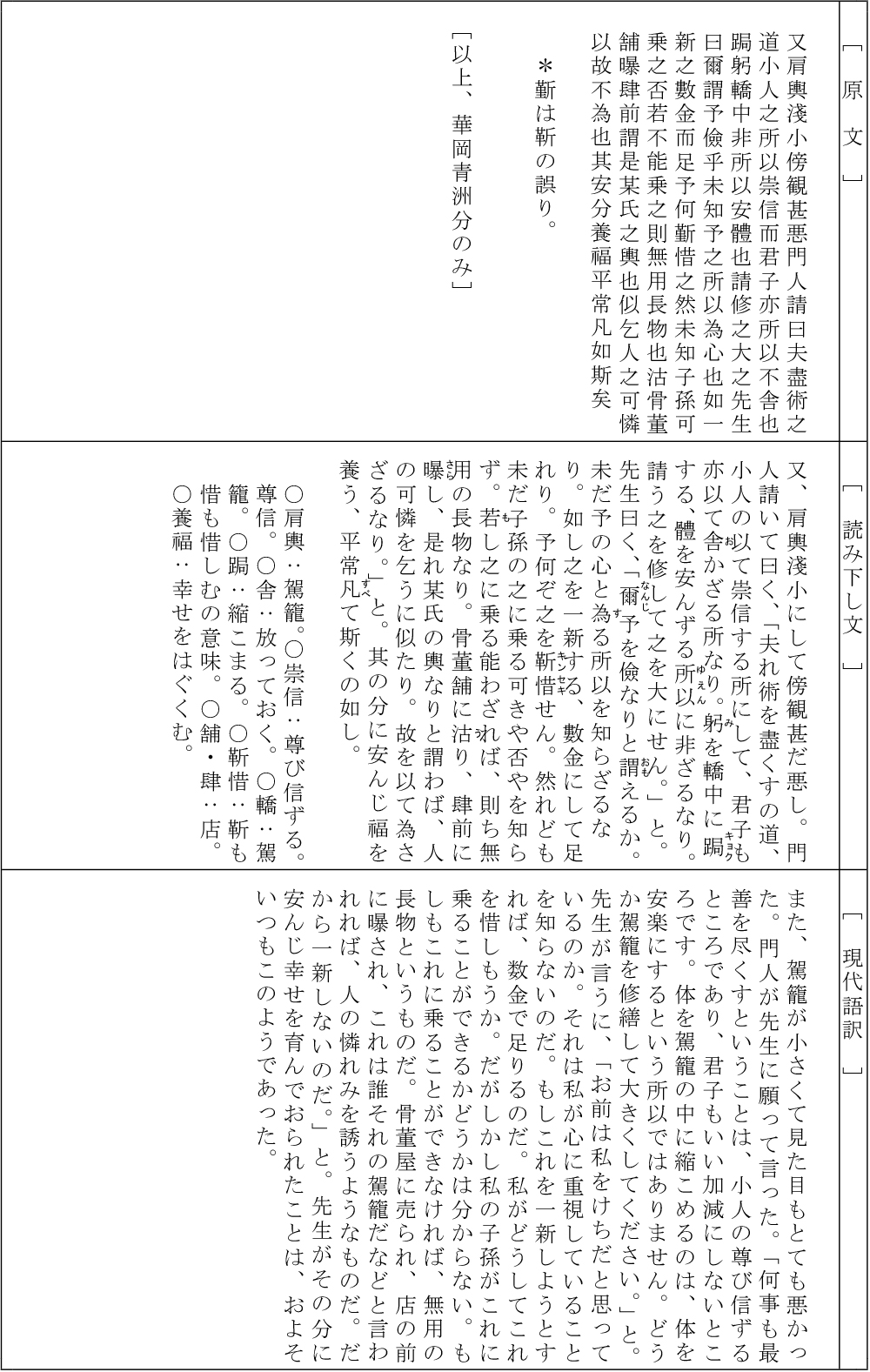 この先祖書にて青洲の履歴を確認し、士分に取立て、帯刀を許可したものと推察できます。注A