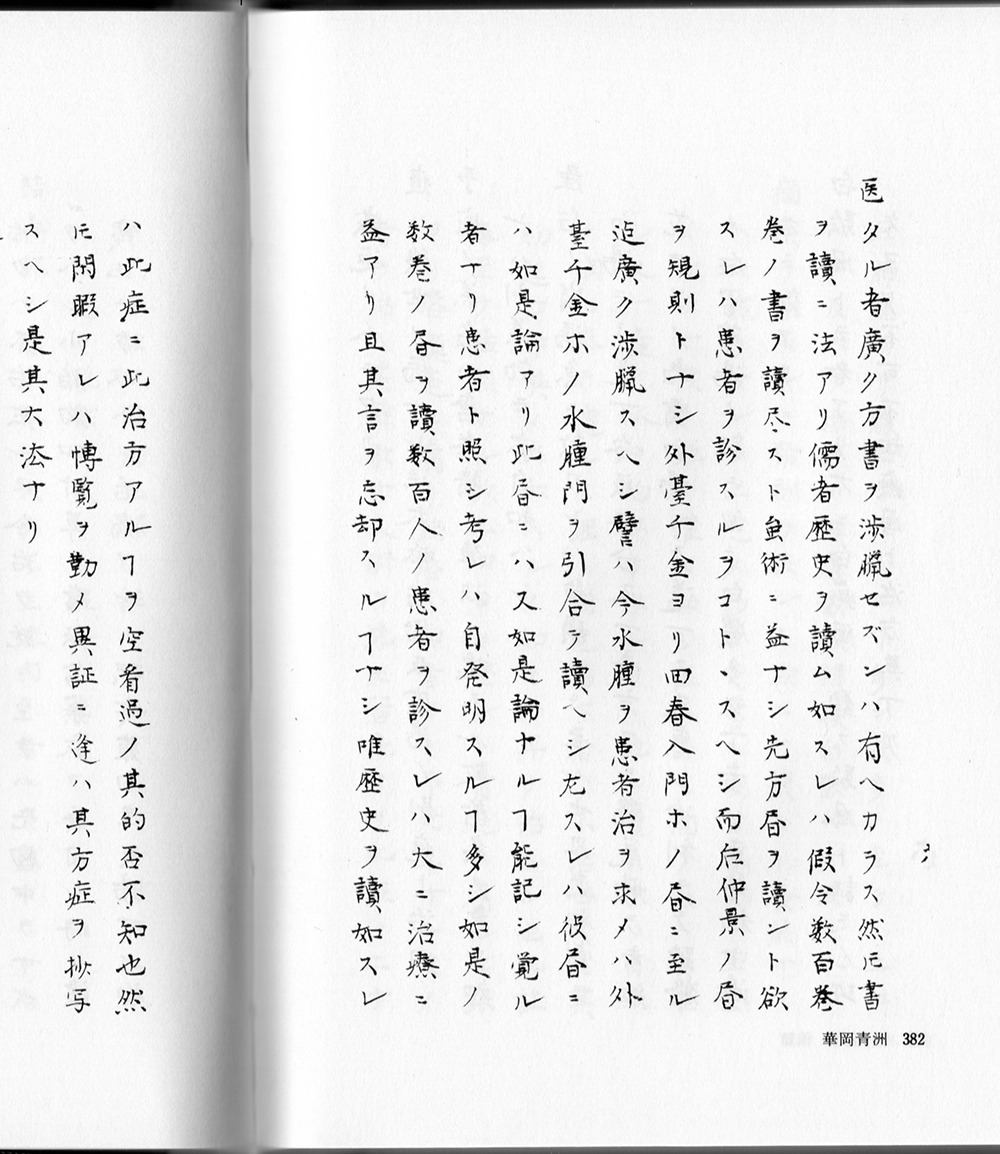 但し、青洲は多くの儒学者とも交友を持っていたので、一概に儒者を批判したのではなく、【医者は目の前にたくさんの違った患者の症状があり、それを治すことが大事で、先ず書物の渉猟・読書が先であるという事ではない】と言っているのだろう。実際に漢方では“匙加減”という言葉通り症状によって少しずつ薬の成分量を変えている。青洲も漢方医(内科医)として、患者の症状に対する漢方薬の処方 “症例別処方箋” を述べたが、弟子たちによってその口述書はたくさん残されている。