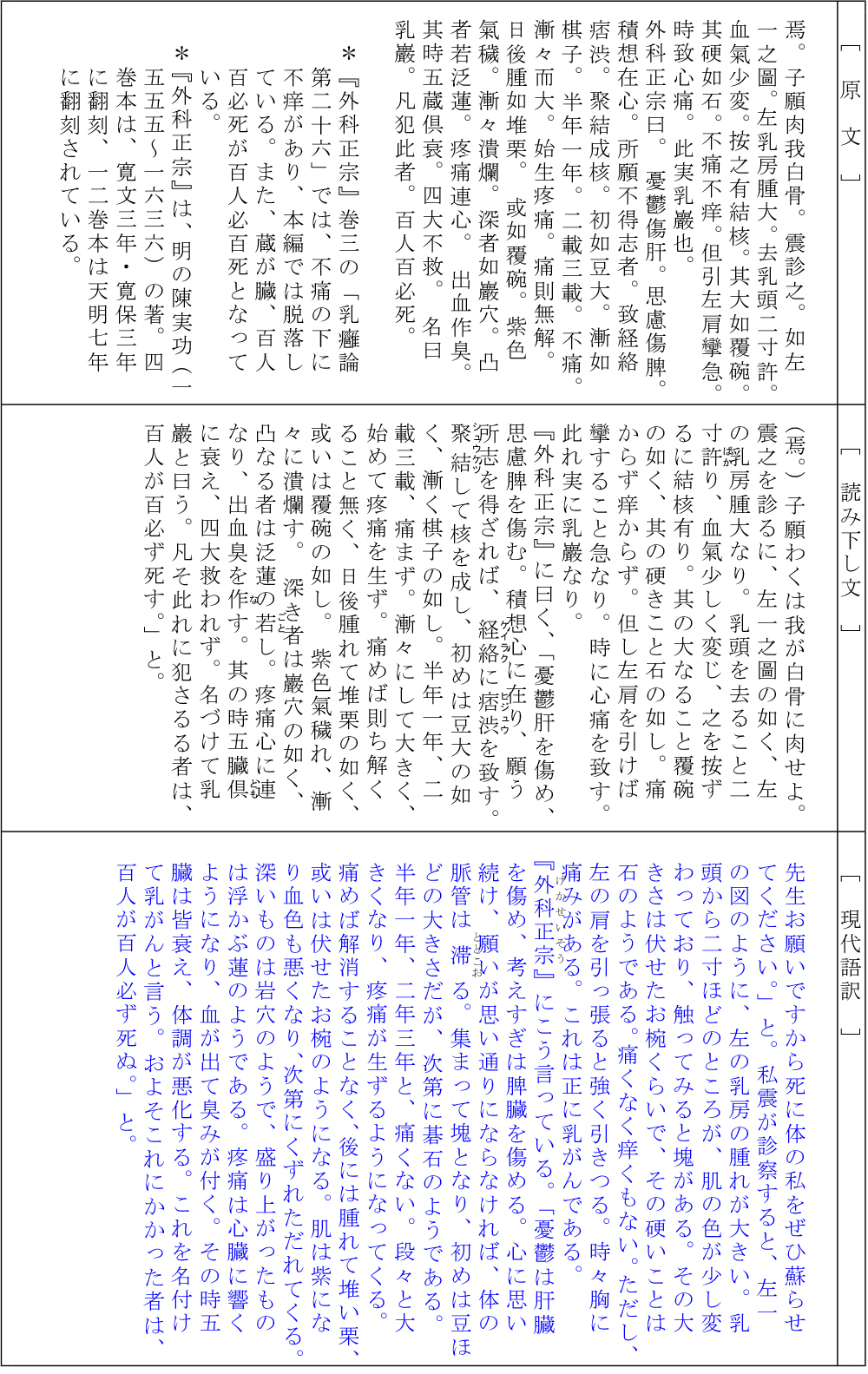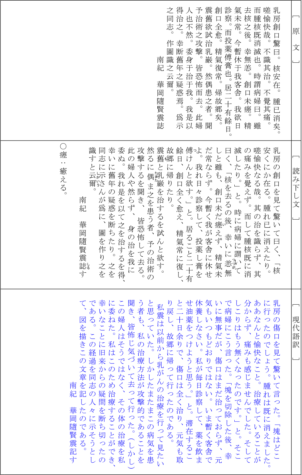 今回は217年前の驚くべき実話である乳がん患者と医師青洲の問答をご紹介します。